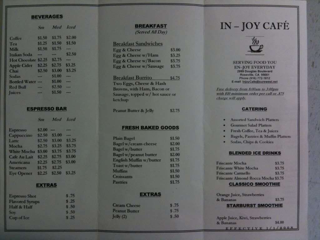 In Joy Cafe Menu Menu For In Joy Cafe Roseville Sacramento